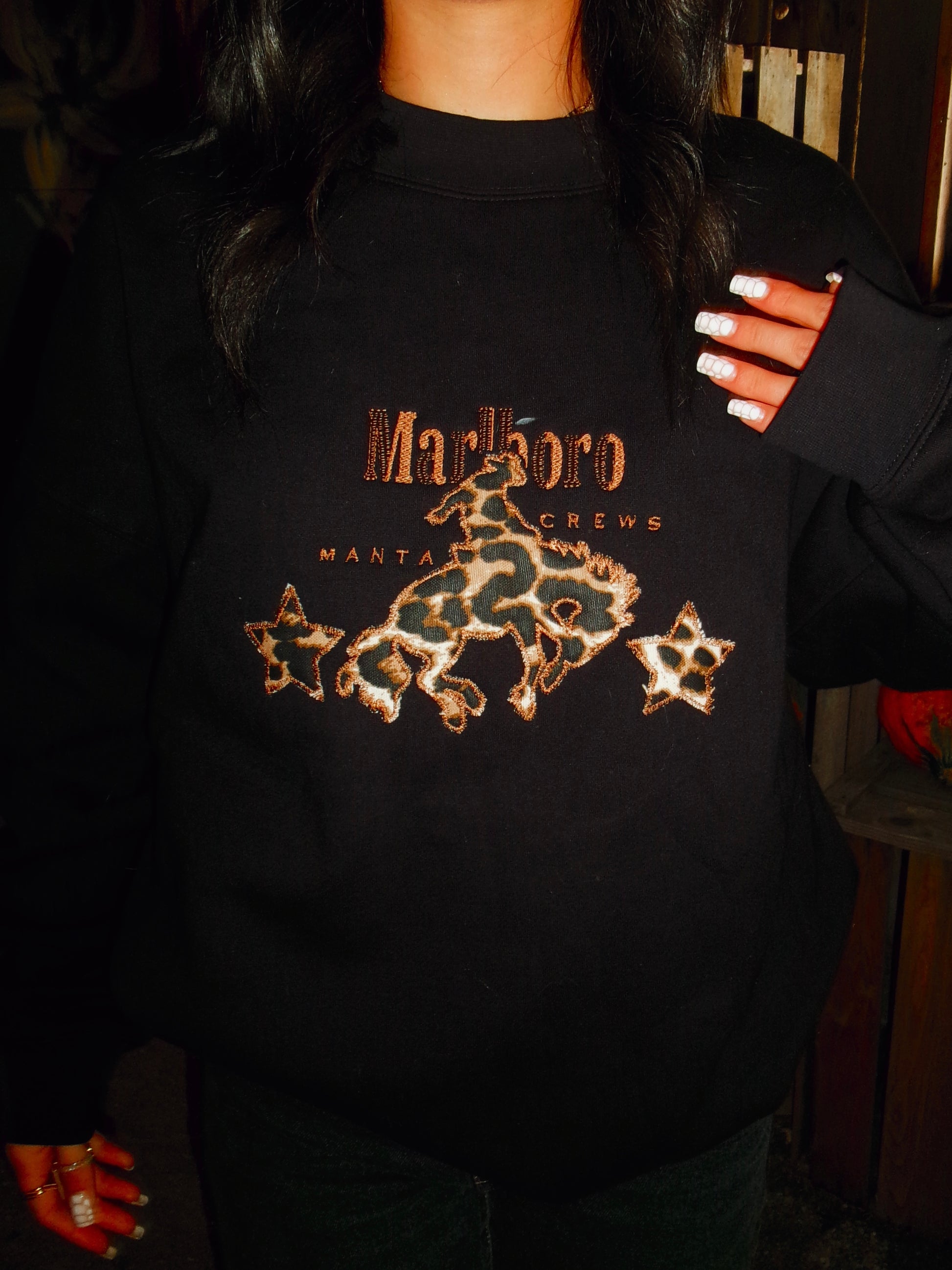 Embrace your western heart in the Marlboro Crew. A thick luxurious sweater made to keep every wandering soul warm. Its heavy blend of 80% cotton and 20% polyester is paired perfectly with an oversized fit.
